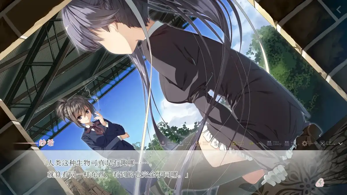 整体阅读体验挺沉重的,不像普通Gal那样给你一路甜甜的恋爱和爆点。相反它更像在逼你去理解那些晦涩的台词(?),有时候我真的会懵逼到抓头。剧情里哲学对白不少,让我到底是在玩Gal还是上文学课??