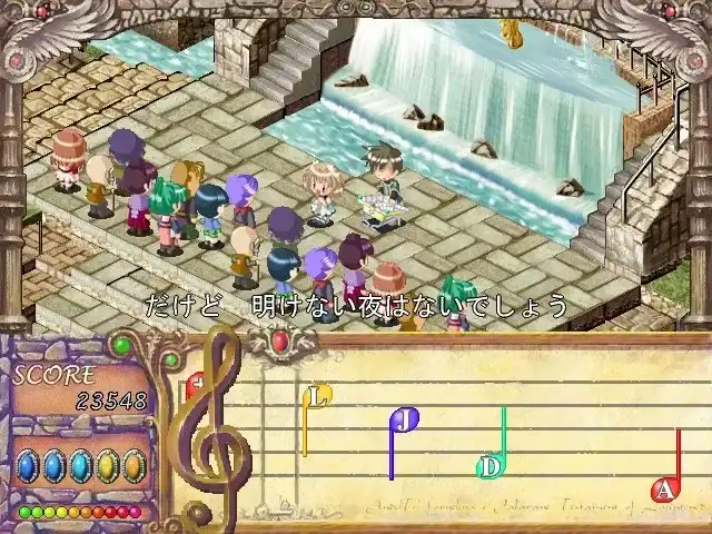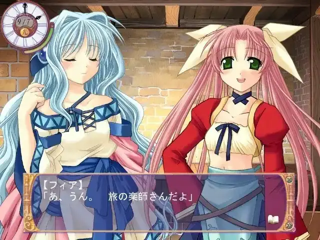 第一次接触这作,我几乎被它那像抒情诗一样散落的对白与音乐段落迷住了。NPC对话往往不像一般AVG那样直白,它更像在描写一个旅人心情的日记。弹奏部分则是我最喜欢的——随着节奏敲击琴键,那种手指和旋律同步的感觉真是太治愈了。