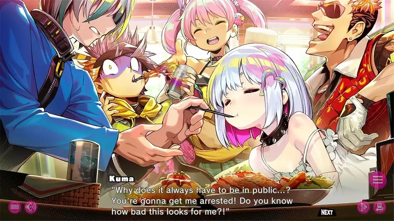 画面与音乐:美术风格非常饱和、高反差、霓虹赛博朋克+萌系人物的混搭——配乐能把欢乐与不安同时放大,主题曲和开场动画做得很抓耳。个人是把 PV 一循环再循环来回血的类型。